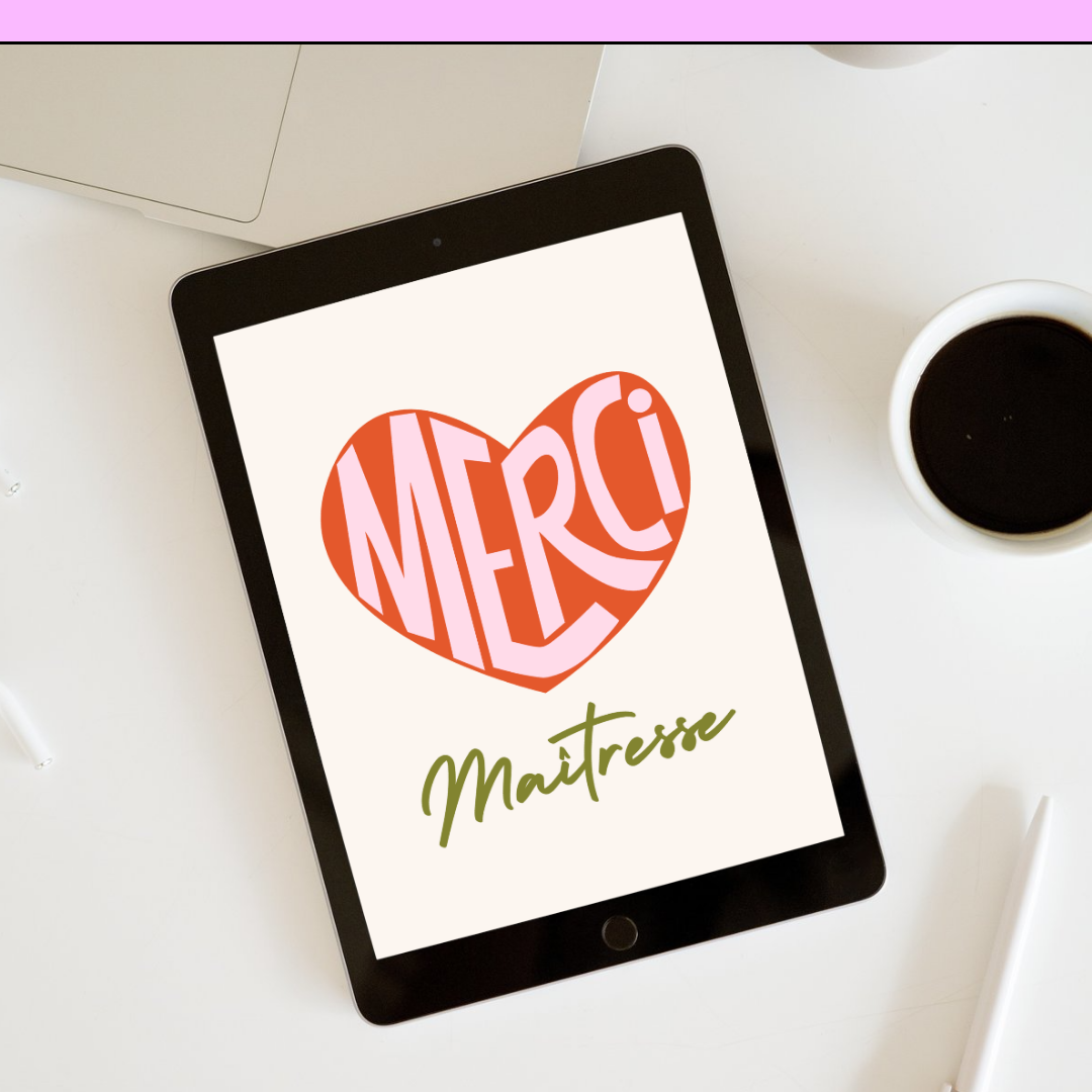 Lot de 6 Cartes de Remerciement à Imprimer - Maîtresse, Maître, ATSEM, Nounou (PDF) - Coeur